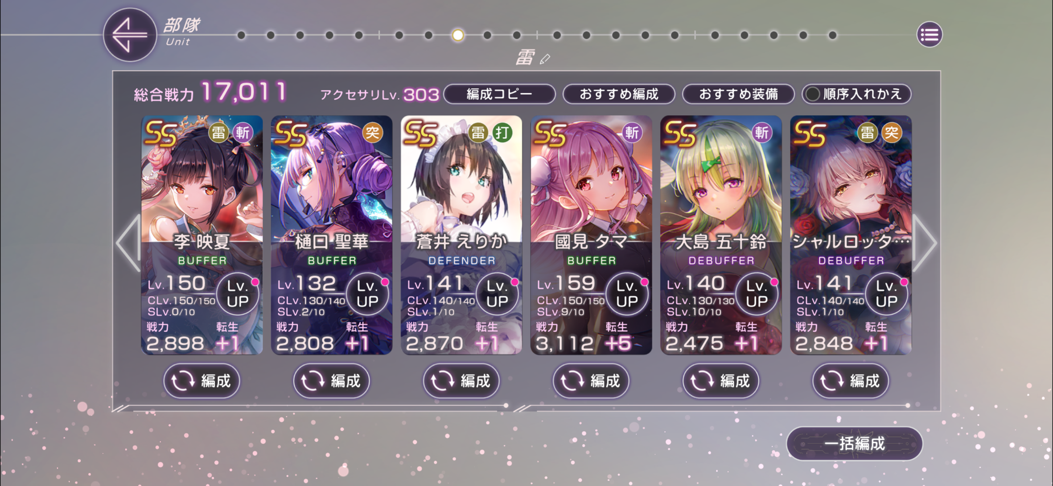 全体攻撃は蒼井で受けて、単体攻撃はSブリで耐える