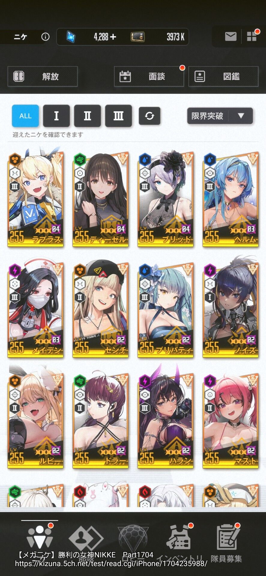 これは初期からガチャぶん回しまくっての登録順って感じだな