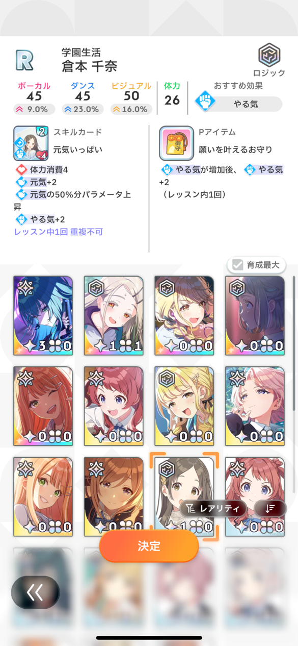 この子序盤は手札の都合でろくにスコア出せずノーマルレッスンクリアがやっと、